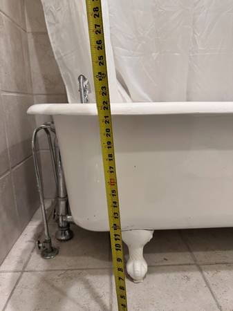 was reglazed in 2000, used very little, but should be reglazed again. dated 1929 on it's belly. very rare size. remodeling to a shower, tub has to go. local pick up only, very heavy, need at least 2-3 persons.