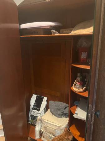 77 inches tall 48 inches wide 16 inches deep Base needs repair I don’t know anything about it Maybe someone can give me some info Easy access You load Thank you