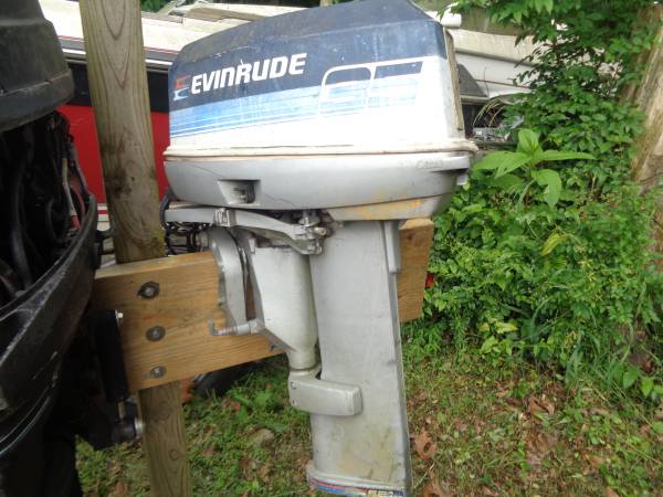 Evinrude 35 HP Motor - 1980's - good compression - did run until stripped down - starter, choke, solenoid and one coil - as you can see missing lower unit - as is $200.00