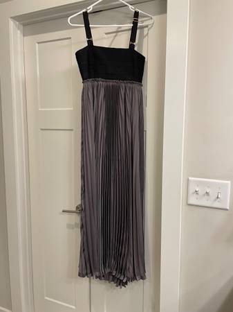 Black upper bandage type elastic with gray silk like pleated flowy bottom