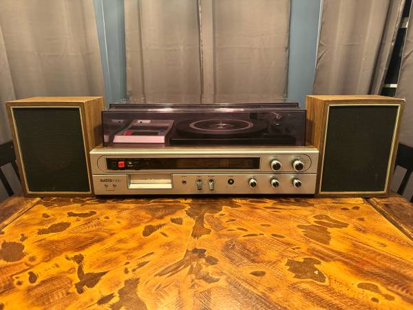 I have for sale or trade a Electro Brand 3 in 1 home stereo with speakers. It works well but the speakers can be a little scratchy and the record player needle needs replacing. Other than that it works great.