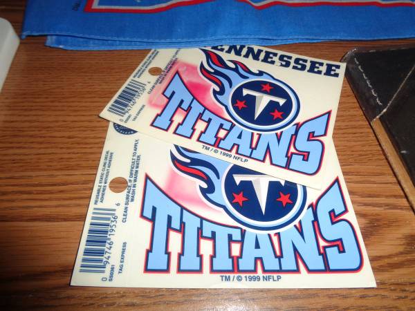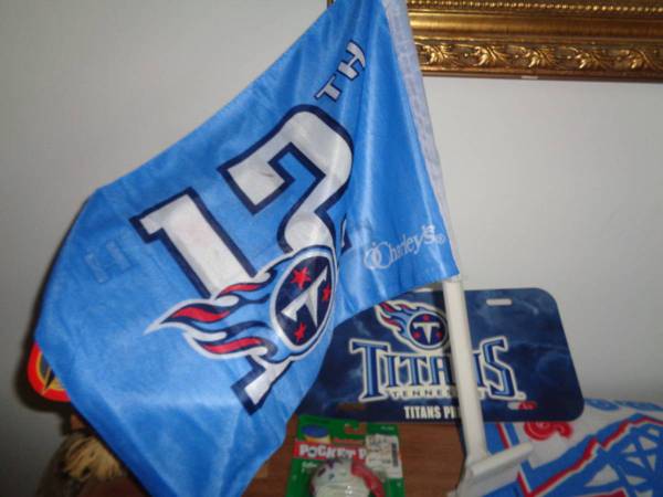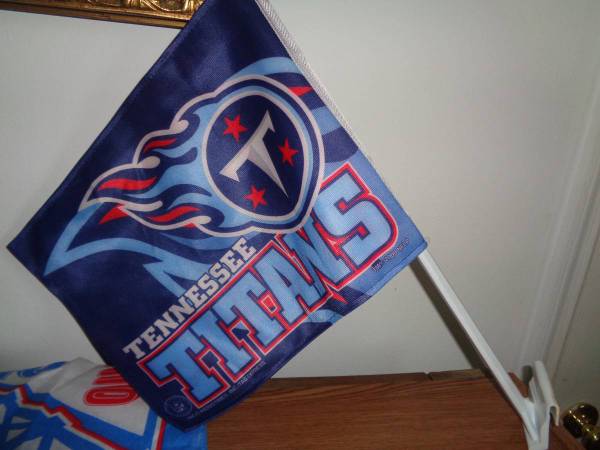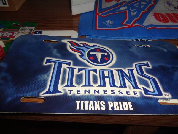 Tennessee Titans / Houston Oilers fan gear - 2 Tennessee Titans car flags - Titans license plate holder (plastic) - Titans license plate (plastic) - Titans key chain - 2 Titans stickers - Oilers...