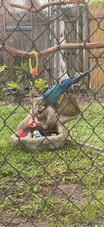 Looking for that great Christmas gift?Blue & Gold Macaw was dna tested proven as female, with cage that was used outside & damaged due to Florida weather. Prefers women, organic veggies and meat diet Asking 3800 obo will arrive in Nashville Dec 12th. For appointment times please reach out.