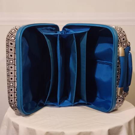 21in Hard Sided Rolling Suitcase makes it a stylish addition to your vacation.It is made with durable polycarbonate plastic in a jazzy Greek key print.The luggage rolls on smooth, 360 degree multi directional spinners with an aluminum telescopic pull handle in eye-catching gold metallic finish. It has a full body main compartment for all of your essentials with built-in compression straps. It also includes an interior zipper mesh compartment that is perfect for keeping your travel bottles secure. The luggage is easy to load into overhead bins and cars with retractable top and side panel handles. It also has a 2 expandable zipper gusset that lets you pack more and expands your space. This luggage is functional, lightweight, strong, and easy to spot clean.