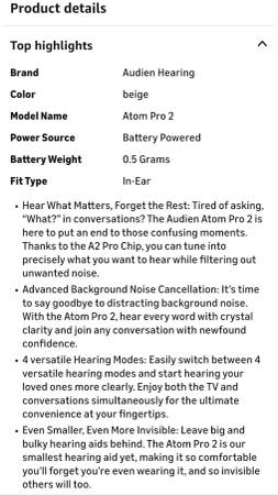 make / manufacturer:AUDIEN ATOM PRO 2 HEARING AIDS