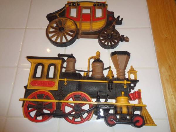 Homco Wall Plaques - Steam Engine Train - #7363 - 11" x 6 5/8" - Western Stagecoach - #7361 - 1975 - smoke/pet free home - phone calls only (no text) - $20.00