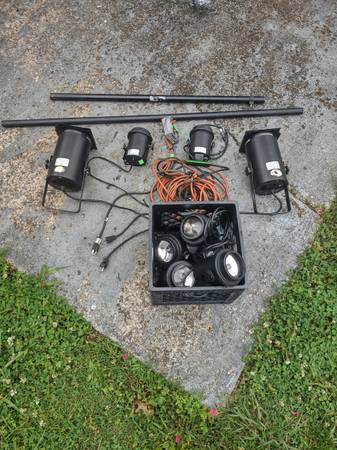 9 lights/brackets and 2 bars to mount to. 2 larger pars and 7 landing lights or smaller lights. More lights in crate. $80 cash Additional lights in brown box are 35 lights all tested and working....
